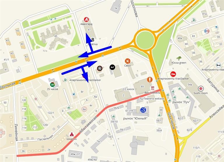 На перекрёстке Караульной с проездами к Абытаевской и Федеральному центру сердечно-сосудистой хирургии запретят левые повороты.