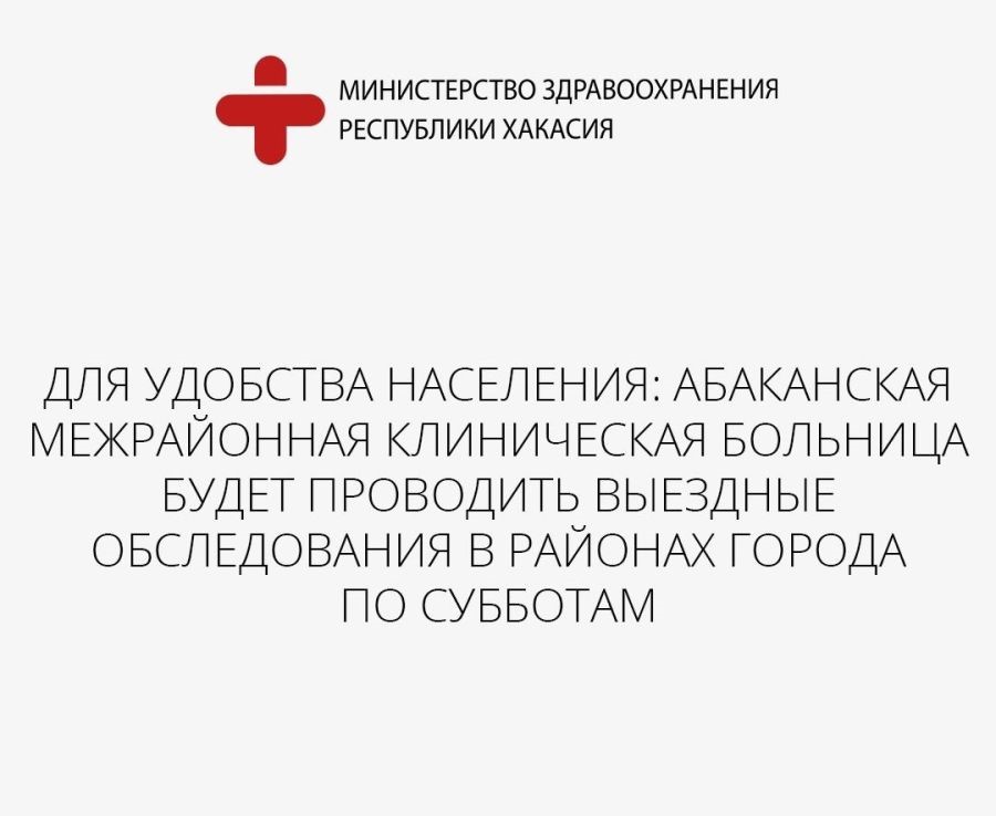 Для удобства населения Абаканская межрайонная клиническая больница будет проводить выездные обследования в районах города по субботам.