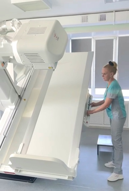 Новый рентгеновский аппарат выполняет высокое качество снимков, имеет расширенные возможности диагностики и низкую лучевую нагрузку. Стол-штатив предназначен для максимального комфорта пациента во время обследования: с помощью телеуправления врач может установить стол в необходимом положении относительно пациента, который может сидеть, лежать или стоять.