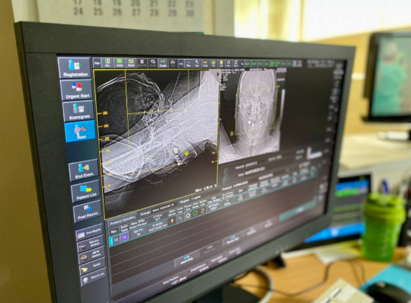 Фото: www.skc-fmba.ru«Это сложная процедура, которую невозможно проводить вслепую, поэтому она проходит в условиях кабинета КТ. Каждое продвижение иглы визуально контролируется с помощью компьютерного томографа. Таким образом достигается высокая точность установки электрода в область тройничного нерва», — рассказал врач-нейрохирург из Новосибирска Александр Дмитриев, поделившийся опытом с красноярскими специалистами.