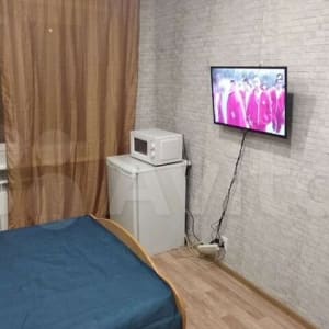 Гостинка с мебелью и бытовой техникой, есть посуда, подушки и одеяла.