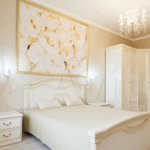 Из мебели: Двухспальная кровать Шкаф Комод Тумба прикроватная Кухонный гарнитур Обеденная группа (стол, 4 стула)