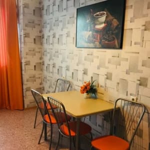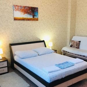 В квартире есть все для комфортного проживания. Комната: кровать, 2 дивана, 2 телевизора, шкаф, журнальный столик. Кухня: обеденный стол, стулья, кухонный гарнитур, электроплита, холодильник, микроволновая печь, электрочайник, посуда и кухонные принадлежности. Санузел: ванная, стиральная машина. Интернет: бесплатный WiFi, кабельное телевидение.