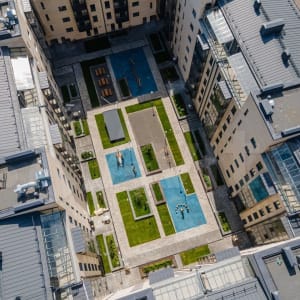 Безопасность жителей — важный принцип Новоостровского. Поэтому во дворах здесь нет машин: дети могут гулять одни, а соседи — устраивать вечеринки. Для автомобилей есть большой подземный паркинг, где машиномест столько же, сколько и квартир.