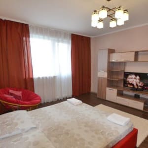 В квартире есть все для комфортного проживания. Комната: кровать, телевизор, шкаф, журнальный столик. Кухня: обеденный стол, стулья, кухонный гарнитур, электроплита, холодильник, микроволновая печь, электрочайник, посуда и кухонные принадлежности. Санузел: ванна, стиральная машина.
