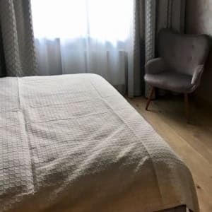 — Кровать заправлена отличного качества постельным бельем. Мы работаем с прачечными и поэтому чистота постельного белья и полотенец ГАРАНТИРОВАНА!