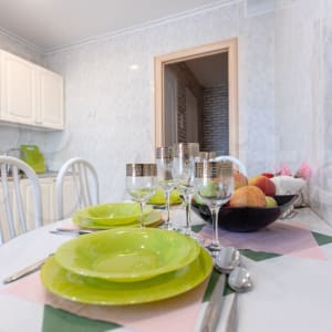 ✔ Залитая солнечным светом кухня дышит свежестью и чистотой. Она оснащена современным гарнитуром, всей необходимой бытовой техникой, полным комплектом разнообразной посуды на шесть персон гостей, что гарантирует возможность творить аппетитные блюда по индивидуальным вкусовым предпочтениям. Обеденная зона располагает к приятным, душевным посиделкам.