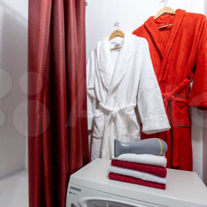 ✔ Раздельный санузел оборудован современной белоснежной сантехникой, сияющей абсолютной чистотой. Гости могут воспользоваться стиральной машиной-автомат и необходимыми принадлежностями для полноценного личного ухода.