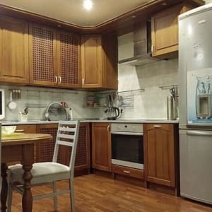 Когда мы обустраивали свое жилье, подбирали только экологически чистую, деревянную мебель. Она в отличном состоянии. Можем оставить ее полностью. Все межкомнатные двери тоже из чистого дерева. В прихожей - большой, очень вместительный элегантный шкаф.  На полу - качественный ламинат.
