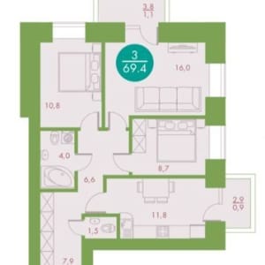 - Комнат в квартире: 3