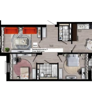 Oбщaя плoщaдь квартиры — 88.95 кв.м.