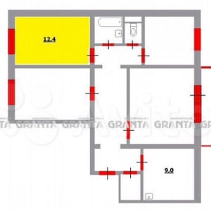 Комната 12,4 м² в 4-к., 5/5 эт.