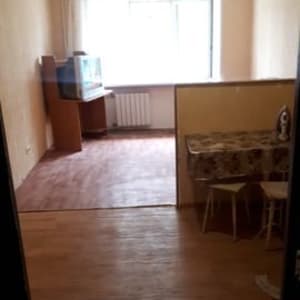 Имеется в комнате - эл.плита, телевизор, холодильник, стол , стул, шкафы, диван.