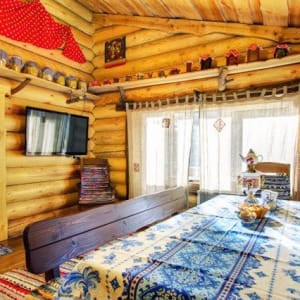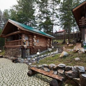 Купель из дерева под открытым небом, с теплой водой. В банях имеется вся необходимая посуда, веники: береза, пихта, дуб, эвкалипт.