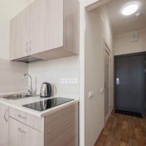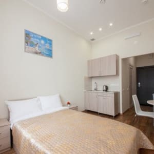 — Апартаменты оснащены всем необходимым для жизни, в комнате имеется двухспальная кровать с ортопедическим основанием, телевизор, журнальный столик, прикроватные тумбы, кухня оснащена всей новой и современной бытовой техникой, в коридоре имеется большой вместительный платиновый шкаф. Высокоскоростной интернет на всей территории дома входит в стоимость.