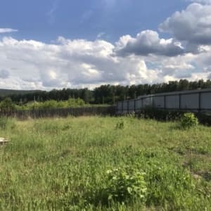 Земельный участок с гаражом и забором. Электричество и городское водоснабжение. На улице соседние дома капитальные, жилые.